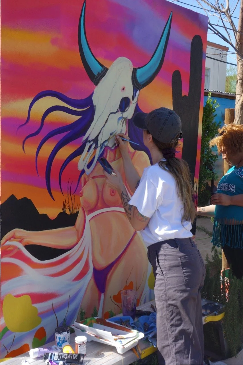 Born and raised in Phoenix, AZ, Allie earned both a BS in Conservation Biology + Ecology and a BFA in Painting from Arizona State University. Her artwork is inspired by her experiences as a biologist exploring and showcasing the biodiversity of the world around us. Utilizing aspects of nature, nostalgia, and personal experience, Allie blends her artistic style with iconic imagery to create culture jams by intertwining current events, both personal and global, with her love of nature and art.