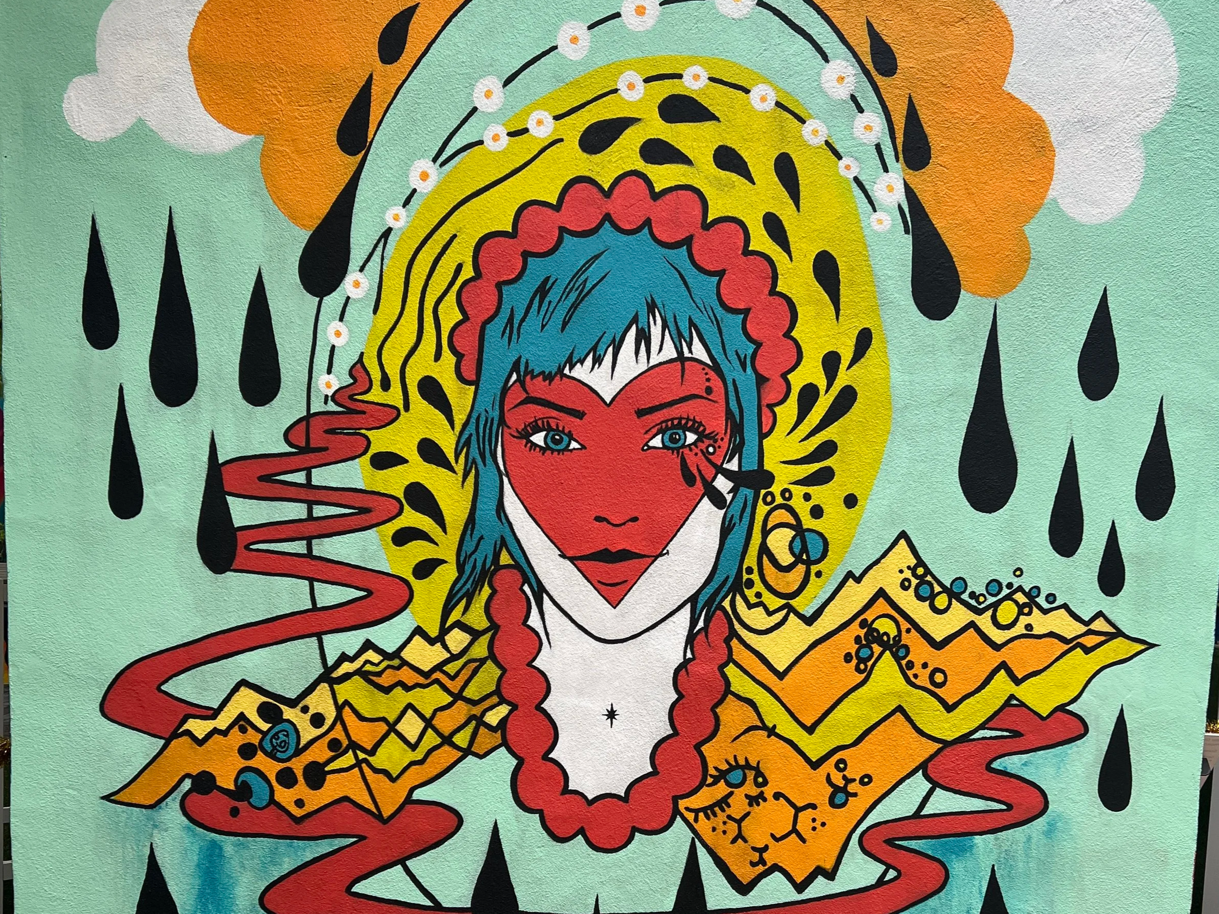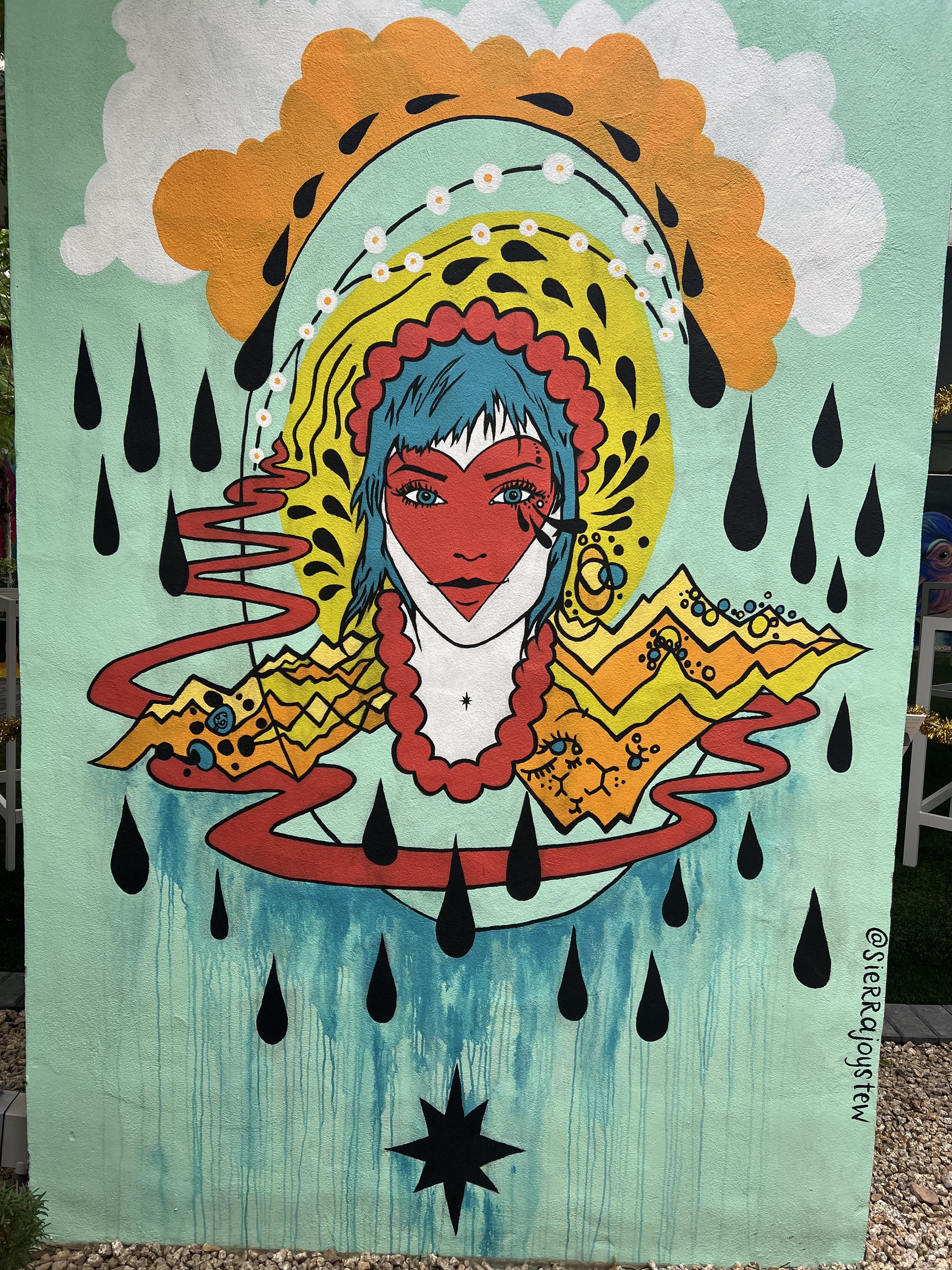 DROOM mountains is a tribute to the murals of The Dressing Room, a beloved cornerstone music venue in downtown Phoenix. Bold colors celebrate the dynamic community of artists who have made this area a creative hub. Flowing, mountainous forms symbolize both the natural beauty of the region and the ever-evolving landscape of local art. This piece honors the legacy of The Dressing Room and the passionate energy of the artists who have shaped its cultural identity.