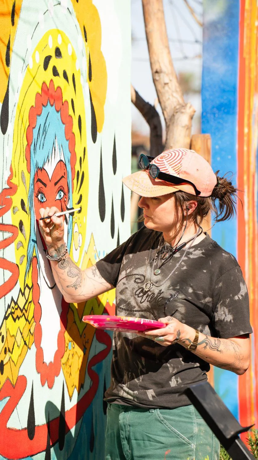 Sierra Joy is a multimedia artist known for creating immersive, sensory-rich environments. Through travel and collaboration, she has developed a strong connection to diverse landscapes and the artistic process. Her work, defined by bold colors and natural elements, celebrates the strength and resilience of the natural world. Each project reflects her gratitude for the land and creative community that have shaped her journey, emphasizing the harmonious relationship between self, nature, and art.